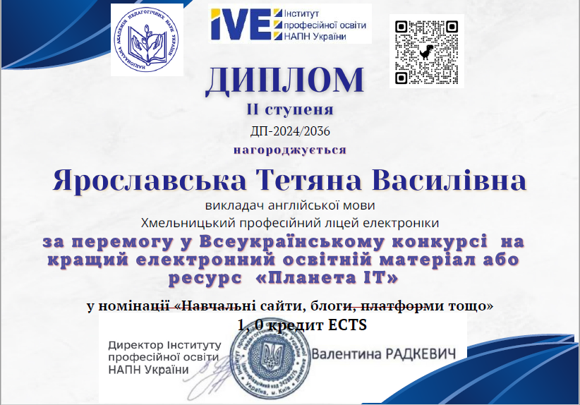 ➬ Публікування статті на тему "Використання освітньо-електронних ресурсів при викладанні англійської мови" (16.10.2024р.)